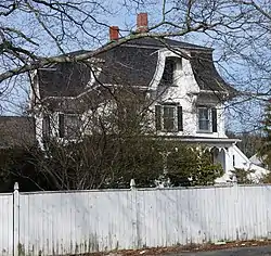 It is a two-story, wood-framed structure, roughly square in shape, with a tall bell-cast mansard roof. A porch extends across the front and around to one side, with chamfered posts and a decorative valance with curved pendant brackets. Similar brackets adorn the main roof cornice. The house was built in about 1860 by Alfred Paull, who was, along with his brother James, a leading developer of the area. It is one of the city's most ornate Second Empire houses.[2]