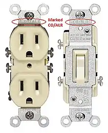Special CO/ALR-rated wall outlet and wall switch