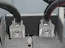 The larger size stranded aluminum wires don't have the same historical problems as solid aluminum wires, and the common terminations for larger size wires are dual-rated terminations called lugs. These lugs are typically made with a coated aluminum alloy, which can accommodate either an aluminum wire or a copper wire. Larger stranded aluminum wiring with proper terminations is generally considered safe, since long-term installations have proven its reliability.