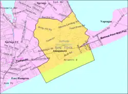 Amagansett /ˌæməˈɡænsət/ is a census-designated place that roughly corresponds to the hamlet by the same name in the Town of East Hampton in Suffolk County, New York, United States, on the South Shore of Long Island. As of the 2010 United States Census, the CDP population was 1,165.[2] Amagansett hamlet was founded in 1680.