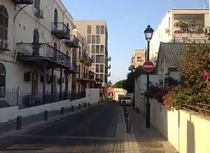 After the start of World War II the German colonists were again interned by the British authorities as the citizens of an enemy state in May 1940, and, after internment in Wilhelma, re-settled in Germany and Australia between 1941 and 1948.[11] Enemy alien property came again into public custody under Keith-Roach. The vacant Immanuel Church was subsequently used by the CMJ until the British retreat in 1947. After the foundation of Israel its government took over the enemy alien property in its own custody. In January 1950 the state of Israel expropriated secular German enemy alien property in its own favour in anticipation of a future agreement with Germany on compensations for claims of Israeli citizens against Germany.[12] In the course of the Reparations Agreement between Israel and West Germany both states agreed on the compensation of the expropriated secular property of then German citizens (Property Agreement finally mediated on 1 June 1962 by Max Sørensen).[12][13] Whereas the buildings of religious usage, like Immanuel Church and its rectory, had remained in public custody and had been handed over to the Lutheran World Federation in 1951 after an agreement of September of that year regulating Israel's compensation of expropriated Protestant religious property of secular purposes, such as schools, farms, factories etc., and the restitution of actual places of worship, cemeteries etc. to Protestant religious bodies.[14][15] In following years the area gradually suffered neglect, but later came to be re-developed or restored, including by a small number of American Christian restorationists, some of them family descendants from the original Maine community. As with the Neve Tzedek area in general, it is now a higher-middle-class part of Tel Aviv. It is located between Florentin and old Jaffa. It is centered mainly around the Auerbach and Beer-Hofmann streets.