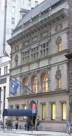 - ↑ "New Home for Fine Arts.; Opening of the American Society's Fifty-seventh Street Building". The New York Times. December 4, 1892. ISSN 0362-4331. Retrieved December 3, 2020.