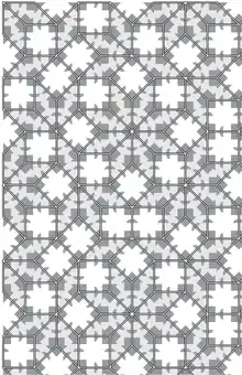In geometry, an Ammann–Beenker tiling is a nonperiodic tiling which can be generated either by an aperiodic set of prototiles as done by Robert Ammann in the 1970s, or by the cut-and-project method as done independently by F. P. M. Beenker. They are one of the five sets of tilings discovered by Ammann and described in Tilings and Patterns.[1]