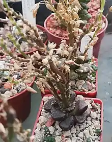 An. retusa has a short, thick caudex. Branching stems are about 4 cm long. They are low or level with the ground.