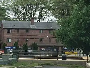 Trolleys arriving at this station travel between 69th Street Terminal in Upper Darby Township, Pennsylvania and Orange Street in Media, Pennsylvania. Anderson Avenue is a dead end street at this station which contains platforms on both sides of the tracks. The other platform is located across the tracks behind the parking lot of a group of condominiums on Valley Road. The station has a white and green stucco shed with a roof where people can go inside when it is raining, but it is on the side with the condominiums.[1]