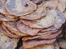 • Kaaja, a deep-fried pastry filled with fruit or soaked in syrup. Variations such as madatha kaaja and kakinada kaaja are eaten across the region.[7][8]