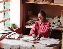 Many Antemoro work as ombiasy and earn their livelihood selling their services as astrologers, sorcerers, or crafters of powerful amulets; it is common for men to travel for six to ten months out of the year.[32] Coffee production is widespread in the Antemoro homeland and generates income for many families. Those who own little or no land often emigrate to work as agricultural laborers in the north and west.[33] The Antemoro Ampanira clan was historically a main producer and trader of sea salt.[34] The Antemoro are well known for their handmade paper, which is often decorated using pressed fresh flowers and leaves. Antemoro paper is a major product marketed to tourists.[24]