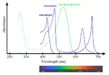The absorbance pattern responsible for the red color of anthocyanins may be complementary to that of green chlorophyll in photosynthetically-active tissues such as young Quercus coccifera leaves. It may protect the leaves from attacks by herbivores that may be attracted by green color.[9]