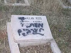 Vandalized grave. The graffiti says "death to the Arabs" by an unknown.