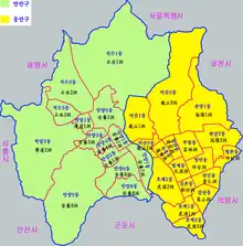 Administrative divisions2 gu (Manan Gu & Dongan Gu), 31 dong
