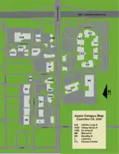 The Apple Campus is the former corporate headquarters of Apple Inc. from 1993 until 2017. In April 2017, it was largely replaced by Apple Park (aka Apple Campus 2), but is still an Apple office and lab space. The campus is located at 1 Infinite Loop in Cupertino, California, United States. Its design resembles that of a university, with the buildings arranged around green spaces.
