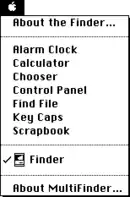 In System 6.0.8 and earlier, the Apple menu featured a Control Panel, as well as Desk Accessories such as a Calculator, the Scrapbook and Alarm Clock. If MultiFinder (an early implementation of computer multitasking) was active, the Apple menu also allowed the user to switch between multiple running applications. The Macintosh user could add third-party Desk Accessories via the System Utility "Font/DA Mover". However, there was a limitation on the number of Desk Accessories that could be displayed in the Apple menu. Third-party shareware packages such as OtherMenu added a second customizable menu (without the trademarked Apple logo[1]) that allowed users to install Desk Accessories beyond Apple's limitations.