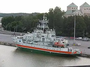 Aranda is a Finnish ice-strengthened research vessel built by Wärtsilä Marine in 1989 and owned by the Finnish Environment Institute. A state-of-the-art research vessel equipped for icy conditions, she operates mainly in the Baltic Sea but has also made voyages to the Arctic Sea as well as the areas around Antarctica.[4]