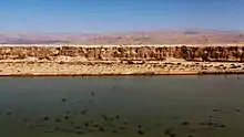 The Arava Stream (Hebrew: נחל הערבה, Nahal HaArava) is an intermittent stream (occasionally flowing in the rainy, winter season) that flows from the approximate mid-point of the Arava desert in Israel's Southern District northward. It is 89 km long, and in many parts, serves as the actual border between Israel and Jordan. The stream originates on the crest of the Notza Ridge, which forms the watershed divide between the Dead Sea and the Red Sea, and from which all streams in the Arava desert flow either north to the Dead Sea or south to the Red Sea. The stream's prominent tributaries include: Nahal Paran, Nahal Barak, Nahal Tzin, Nahal Tzafit, and Nahal Nekorot.[2] In addition to Israel and Jordan, parts of its drainage basin are in the Sinai Peninsula, Egypt.[3]