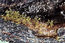 Arceuthobium americanum is a species of dwarf mistletoe known as American dwarf mistletoe and lodgepole-pine dwarf mistletoe. It is a common plant of western North America where it lives in high elevation pine forests. It is a parasitic plant which lives upon the Lodgepole Pine, particularly the subspecies Pinus contortus ssp. murrayana, the Tamarack Pine. This pine subspecies is most common in the Cascade Range and Sierra Nevada. The American dwarf mistletoe is a yellow-green coral-shaped structure above the surface of the tree's bark, while most of the parasite is beneath the bark. The seeds mature in late summer and disperse to nearby trees. This species has been found to explosively-disperse its seeds through thermogenesis.[1]