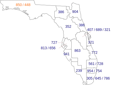 | West: 251 | area code 850 | East: 352, 386 |