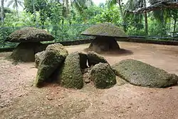 Ariyannur Umbrellas is a prehistoric Megalith burial site situated in Ariyannur in Kandanassery Panchayat of Thrissur District of Kerala. Archaeological Survey of India in 1951 declared it as a centrally protected monument. The site has six umbrella stones or mushroom stones, locally called Kudaikkallu. Of them, four are intact and two are partially broken.[1][2][3][4][5]
