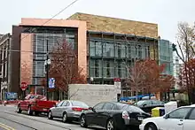 In 1976, the Arkansas Apollo 17 lunar sample display was presented to Arkansas governor David Pryor; Bill Clinton succeeded Pryor as Governor of Arkansas.[4] Valued at several million dollars, the display was reported missing around 1980.[5] It was rediscovered in 2011 by an archivist, according to the director of the Central Arkansas Library System. The archivist found it in a box of Clinton's gubernatorial materials in the basement of the Butler Center for Arkansas Studies in Little Rock.[6] The plastic ball container holding the Moon rock was broken off in a box of Clinton's gubernatorial materials. (It has since been reattached.)[6] It was turned over for display at the Arkansas Museum of Discovery in Little Rock.[7][8]