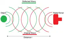 array processing concept was closely linked to radar and sonar systems which represent the classical applications of array processing. The antenna array is used in these systems to determine location(s) of source(s), cancel interference, suppress ground clutter. Radar systems used basically to detect objects by using radio waves. The range, altitude, speed and direction of objects can be specified. Radar systems started as military equipments then entered the civilian world. In radar applications, different modes can be used, one of these modes is the active mode. In this mode the antenna array based system radiates pulses and listens for the returns. By using the returns, the estimation of parameters such as velocity, range and DOAs (direction of arrival) of target of interest become possible. Using the passive far-field listening arrays, only the DOAs can be estimated. Sonar systems (Sound Navigation and Ranging) use the sound waves that propagate under the water to detect objects on or under the water surface. Two types of sonar systems can be defined the active one and the passive one. In active sonar, the system emits pulses of sound and listens to the returns that will be used to estimate parameters. In the passive sonar, the system is essentially listening for the sounds made by the target objects. It is very important to note the difference between the radar system that uses radio waves and the sonar system that uses sound waves, the reason why the sonar uses the sound wave is because sound waves travel farther in the water than do radar and light waves. In passive sonar, the receiving array has the capability of detecting distant objects and their locations. Deformable array are usually used in sonar systems where the antenna is typically drawn under the water. In active sonar, the sonar system emits sound waves (acoustic energy) then listening and monitoring any existing echo (the reflected waves). The reflected sound waves can be used to estimate parameters, such as velocity, position and direction etc. Difficulties and limitations in sonar systems comparing to radar systems emerged from the fact that the propagation speed of sound waves under the water is slower than the radio waves. Another source of limitation is the high propagation losses and scattering. Despite all these limitations and difficulties, sonar system remains a reliable technique for range, distance, position and other parameters estimation for underwater applications.[3][5]
