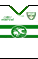 - Home Kit white shirt with a green strip that runs across the chest with green shorts and white socks.