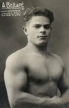 Attilio Bescapè (2 September 1910 – 1975) was an Italian weightlifter. He competed at the 1932 and 1936 Olympics in the featherweight class (−60 kg) and finished in fifth and sixth place, respectively. He won a silver medal at the 1938 World Weightlifting Championships.[1]