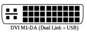 ![]() Male DVI connector pins (view of plug) ![]() Male M1-DA connector pins (view of plug) |