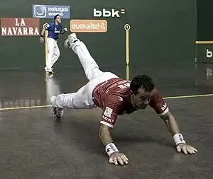 ![]() Titín III falling to the floor after hitting the ball on a professional game. | |