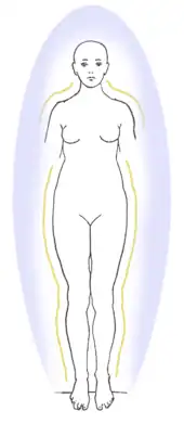 According to spiritual beliefs, an aura or energy field is a colored emanation said to enclose a human body or any animal or object.[1] In some esoteric positions, the aura is described as a subtle body.[2] Psychics and holistic medicine practitioners often claim to have the ability to see the size, color and type of vibration of an aura.[3]