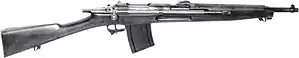 The AVS-36 (from Avtomaticheskaya Vintovka Simonova 1936 model; (АВС-36)) was a Soviet automatic rifle which saw service in the early years of World War II. It was among the early selective fire infantry rifles (capable of both single and full-automatic fire) formally adopted for military service. The designer, Sergei Simonov, began his work with a gas-operated self-loading rifle in 1930. The first prototype was ready in 1931 and appeared promising, and three years later a trial batch of an improved design was made. In 1935, a competition between Simonov's design and a rifle made by Fedor Tokarev was held. The Simonov rifle emerged as a winner and was accepted into service as the AVS-36. The AVS-36 was first seen in public in the 1938 May Day parade in Moscow, when it was displayed by the marching 1st Rifle Division. The American public became aware when it was covered in an August 1942 issue of the American Infantry Journal, in an article by John Garrett Underhill Jr. Simonov would later design an anti-tank rifle, the PTRS-41, and the SKS carbine, which employed simpler tilting bolt operation.