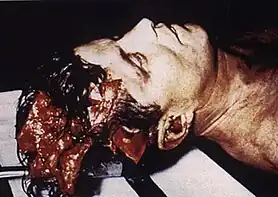 A picture of President Kennedy's head and shoulders taken at the autopsy