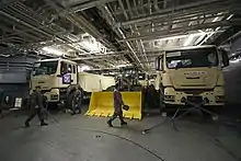The flight deck of the Pisco has the capability to hold two Sikorsky SH-3 Sea King helicopters of the Peruvian Naval Aviation while an incorporated hangar can store an additional helicopter.[2] The ship uses a roll-on/roll-off system, and can reportedly transport 450 troops for up to 30 days.[4]