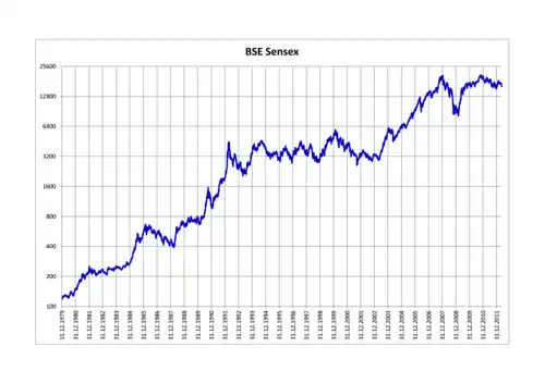 The following is a timeline on the rise of the SENSEX through Indian stock market history.