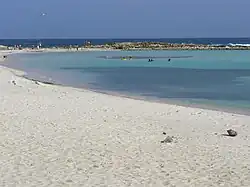 Baby Beach officially known as Klein Lagoen, is a shallow, sheltered man-altered[1] lagoon located in the Mangle Cora locality[2][3] near the village of Seroe Colorado (formerly Roode Berg),[4] on the south-west side of the south-east end of the island of Aruba. It is frequented by locals and tourists. It is nicknamed Baby Beach as the water is so calm it is safe for very small children. Because of the calm water, snorkeling at this beach is safe for children and others new to snorkeling.
