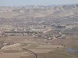 The province is very windy; the name "Badghis" is a corruption of the Persian compound "bâd-khiz", meaning "wind source", referring to the steppe winds that blow into the province from the north and northwest. Its northern border extends to the edge of the part of the Karakum desert known as the Sarakhs desert. Northern Badghis includes the loess and other aeolian formations, known locally as the "chul",[10] through which the Turkmen-Afghan boundary runs.[11] Across the border in Turkmenistan is the Badhyz State Nature Reserve in the Badkhiz-Karabil semi-desert.[12]