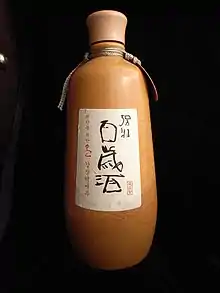 Baekseju (백세주; 百歲酒; sold under the brand name Bek Se Ju) is a Korean glutinous rice-based fermented alcoholic beverage flavored with a variety of herbs, ginseng most prominent among them. The name comes from the legend that the healthful herbs in baekseju will result an individual to live up to 100 years old.