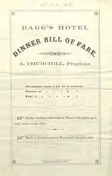 The "Utica Tally-Ho Stage Coach" transited travelers to and from the hotel.[3] There was a fire in the "wineroom" in 1895.[4]