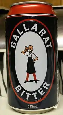 The beer is of the bitter top fermented ale variety,[1] and was traditionally sold in 750ml longnecked bottles, with the label featuring the character "Ballarat Bertie", who was conceived in 1926 on a train journey between Melbourne and Sydney by a Ballarat Brewing Company director and an advertising agency.[2]
