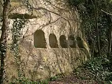 - ↑ The Artificial cavities of la Falaise in the Camp de la Burette, at Banville (Calvados), Léon Coutil, 1918 (in French)
