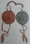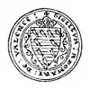The seals appended by hempen cords to Exemplar B were "tricked" (i.e. reproduced by drawing) by Lancaster Herald Nicholas Charles in 1611.[8] He also made a transcript of Exemplar B., which clearly was then in a better state of preservation than today.[9] Whilst his drawings provide much detail which is otherwise difficult to see in photographs of the seals themselves, some of his transcripts of the legends are inaccurate.[10]