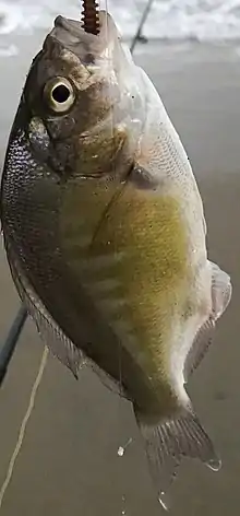 | Barred Surfperch caught at the Cowell Beach in Santa Cruz, CA, USA | |