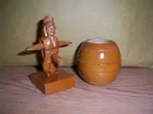 A barrel man or barrelman is a souvenir doll or statuette popular in the Philippines. The statuette usually consists of a crude male figurine carved out of wood, partially hidden inside a round wooden barrel. When the barrel is taken off, the male figure inside is revealed, sporting a prominent phallus in the lower part of the figure's anatomy.[1]