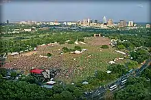 During the 1972 presidential election, Barton Hills was labeled a political bellwether, described as being a microcosm of the national population.[3] In the 1970s, much of the lots and streets west of Barton Skyway were re-platted into a subdivision named "Horseshoe Bend". In 1978, City Manager Dan Davidson asked the Austin City Council to authorize preliminary engineering to build a previously-proposed bridge over Barton Creek to connect Barton Skyway from Spyglass Drive to Barton Hills Drive.[4] The city also planned to extend Barton Skyway west to Bee Caves Road, along with connecting various gaps east between Lightsey Road to Woodward Street.[4] Residents of Barton Hills and Horseshoe Bend protested the bridge, concerned about increased traffic and damage to Barton Creek. The bridge was eventually shelved and the former right-of-way was absorbed into the Barton Creek Greenbelt.[4]