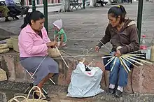 Most artisans make the items part-time, as a complement to other economic activities, and workshops are based in family homes, with various members participating. Some artisans have organized into cooperatives to promote their work.[1] However, most basketry products are easily replaced by manufactured goods, and in areas the resources needed to make them are becoming scarce.[5] Basketry has declined in Mexico with the introduction of plastic containers in the 1970s and similar products imported from Asian since 2005.[6] For these and other reasons, basketry is not as important a handcraft as others such as ceramics, but it still plays an important domestic and commercial roles in rural communities in states such as Guerrero, State of Mexico, Oaxaca, Puebla, Sonora, Michoacán and Veracruz.[5][7]