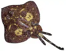 Bathyraja mariposa, sometimes referred to as the butterfly skate,[2] is a species of skate found in the Aleutian islands.[3] It is overall a medium-brown color, lacks thorns on the disc and has indistinct thorns on the tail. It was discovered in 2002 during a National Marine Fisheries Service survey, and first described in 2004. The holotype specimen is held at the University of Washington. Its species name "mariposa" derives from the Spanish word for butterfly, although several other species are sometimes referred to as the "butterfly skate."[3][4]