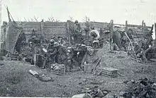 Except where shell-holes obstructed drainage, the ground in west Flanders dried quickly and became dusty after a few dry days.[8] A 1989 study of weather data recorded from 1867 to 1916 at Lille, 16 mi (26 km) down the road from Ypres, showed August to be more often dry than wet, that there was a trend towards dry autumns (September–November) and that average rainfall in October had decreased over the previous fifty years.[9] From 1 to 10 August, 59.1 mm (2.33 in) of rain fell, including 8 mm (0.31 in) in a thunderstorm on 8 August.[10] During August 1917, 127 mm (5.0 in) of rain fell, 84 mm (3.3 in) of which fell on 1, 8, 14, 26 and 27 August. The month was so overcast and windless that water on the ground dried slower than usual. September had 40 mm (1.6 in) of rain and was much sunnier, the ground drying quickly, hard enough in places for shells to ricochet and for dust to blow in the breeze. In October, 107 mm (4.2 in) of rain fell, compared to the 1914–1916 average of 44 mm (1.7 in) and from 1 to 9 November there was another 7.5 mm (0.30 in) of rain and only nine hours of sunshine, little of the water drying; another 13.4 mm (0.53 in) of rain fell on 10 November.[11]