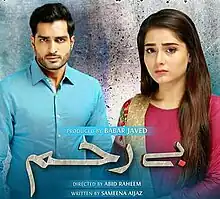 BayReham (Urdu: بے رحم, lit. 'Merciless') is a 2018 Pakistani soap drama serial directed by Abid Rahim, produced by Babar Javed and written by Samina Ejaz. The drama stars Omer Shahzad and Sumaiyya Bukhsh in lead roles, and was first aired on 17 July 2018 on Geo Entertainment, where it aired Monday to Friday followed by Umm-e-Haniya.[1] The story is about the psycho husband who tortures his wife.[2]