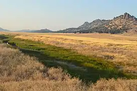 Upstream in the Bear Creek watershed the creek flows for 10 miles through a broad flat valley that has spectacular displays of wildflowers in the spring.[1]