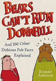 Bears Can't Run Downhill is a book by Robert Anwood published in 2006 by Ebury Press. It popularises the idea of pub facts. It is written to investigate (and thereby debunk or confirm) commonly held beliefs such as "One dog year equals seven human years" and "In the UK, it is illegal to burn money."