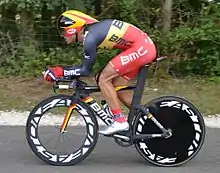 2011 champion Philippe Gilbert wearing the champion's jersey during the 2012 Tour de France