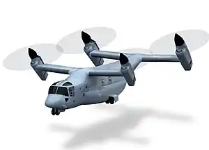 The Bell Boeing Quad TiltRotor (QTR) is a proposed four-rotor derivative of the Bell Boeing V-22 Osprey developed jointly by Bell Helicopter and Boeing. The concept is a contender in the U.S. Army's Joint Heavy Lift program (a part of Future Vertical Lift program). It would have a cargo capacity roughly equivalent to the C-130 Hercules, cruise at 250 knots, and land at unimproved sites vertically like a helicopter.[1]
